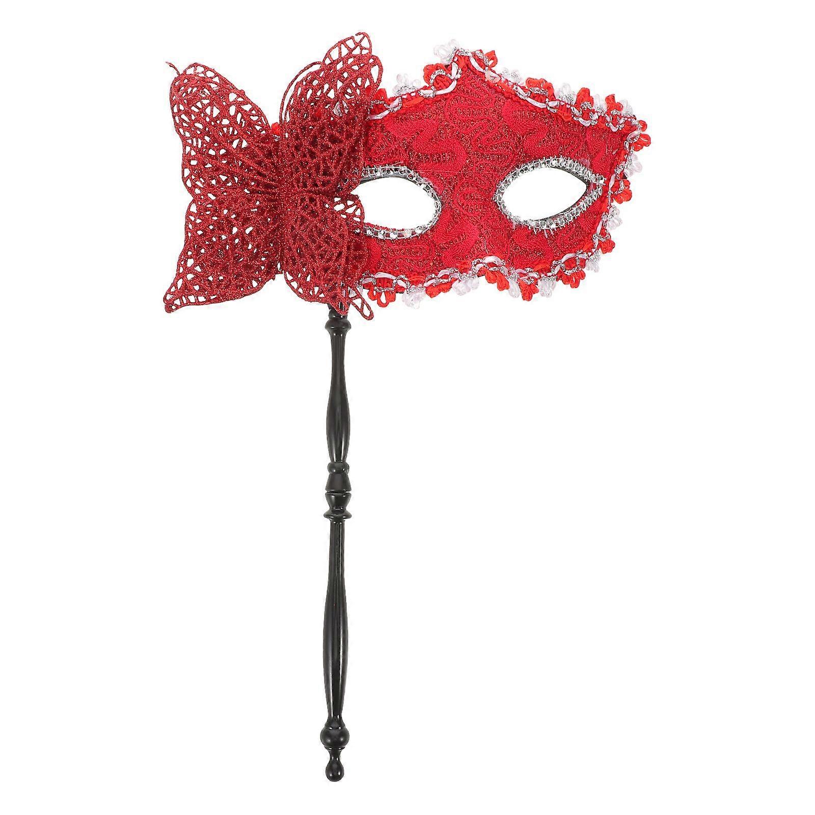 Butterfly Masquerade Mask With Stick, Venetian Half Face Mask Handheld, Cosplay Masquerade Accessory For Mardi Gras, Carnival, Festive Events Red