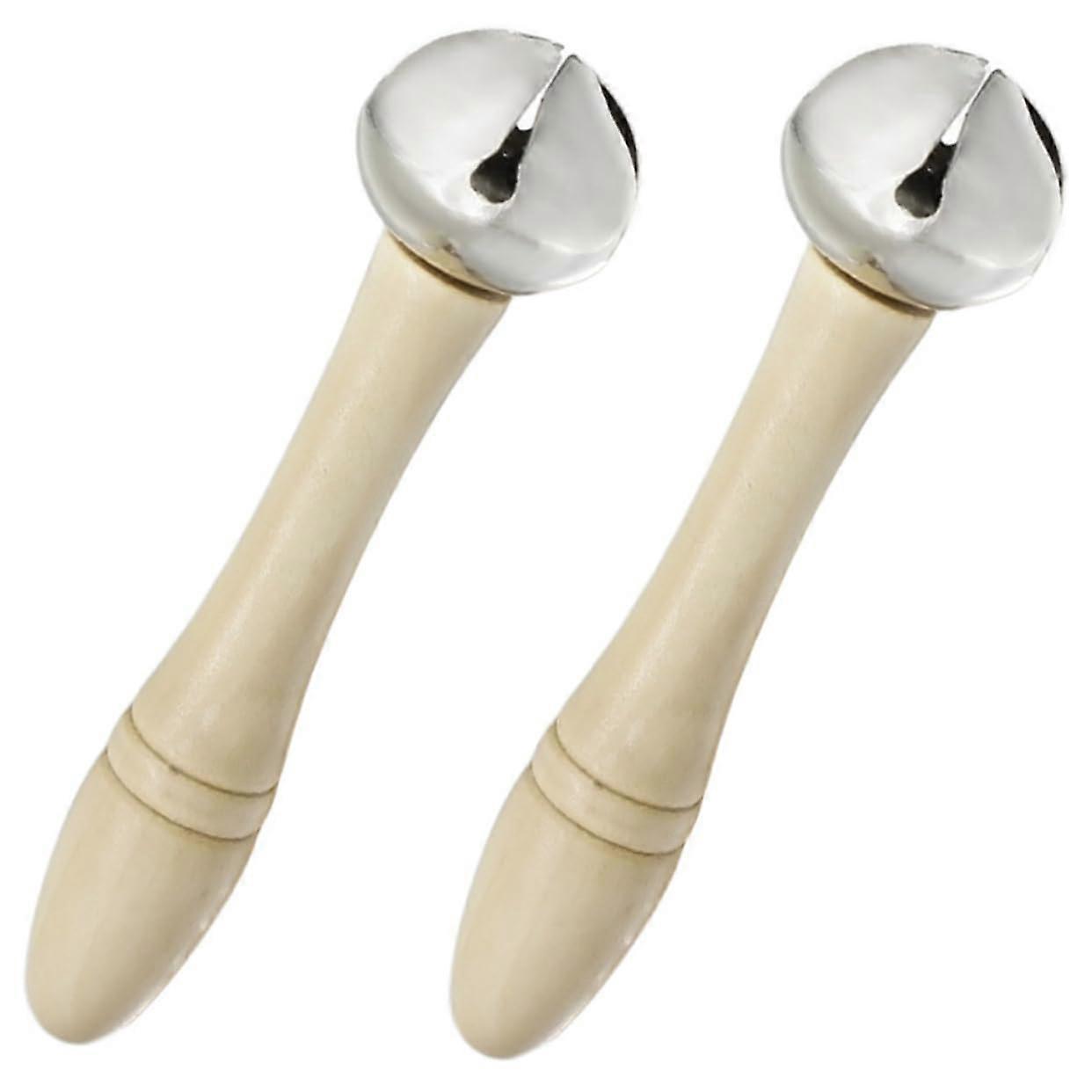 2Pcs Handheld Jingle Bells with Wooden Handle, Percussion Instruments for Classroom, Parties, Events