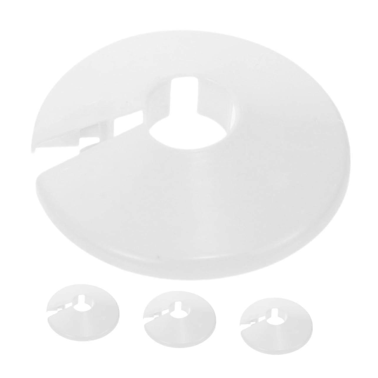 4Pack Round Pipe Covers Wall Flange Escutcheon Plates for Shower Faucet White Keep pipe penetrations neat and professional with this set of four round wall flange escutcheon plates. Designed for simple, reliable coverage around shower faucet pipes and similar plumbing penetrations, these white escutcheons improve appearance and make maintenance faster. Key benefits Clean finish: Conceals rough edges, gaps, and mounting hardware for a tidy bathroom or utility area. Quick installation: Designed for easy fit over exposed pipes so you can install without special tools. Ready for multiple projects: Four pieces provide spares or allow use at several fixtures. Neutral appearance: White, round design blends with common bathroom fixtures and tile work. Versatile use: Suitable for shower faucets and other plumbing pipe entries where a clean wall transition is needed. Features and compatibility Quantity: 4 pieces per pack. Shape and color: Round escutcheon plates in white for a discreet, uniform look. Function: Covers the area where pipes pass through walls or tiles to create a finished appearance. Compatibility: Intended for shower faucet pipes and similar plumbing applications; fits typical pipe entry points used in home and office bathrooms. Typical use scenarios Bathroom renovation: Use to hide uneven tile cuts around a newly installed shower valve for a polished final appearance. Property maintenance: Quick replacement for worn or missing escutcheons in rental or commercial restrooms to restore a tidy look. Temporary or final repairs: Slide over exposed piping after fixture service to conceal gaps and speed up cleanup. Installation tips Clean the wall and pipe surface before fitting. Slide each escutcheon over the pipe and press it flush against the wall for a finished look. For a tighter fit, ensure the pipe and surrounding area are of debris and dry. This pack provides a simple, loweffort solution to improve the appearance of plumbing penetrations in homes and offices while keeping fixtures looking well maintained.