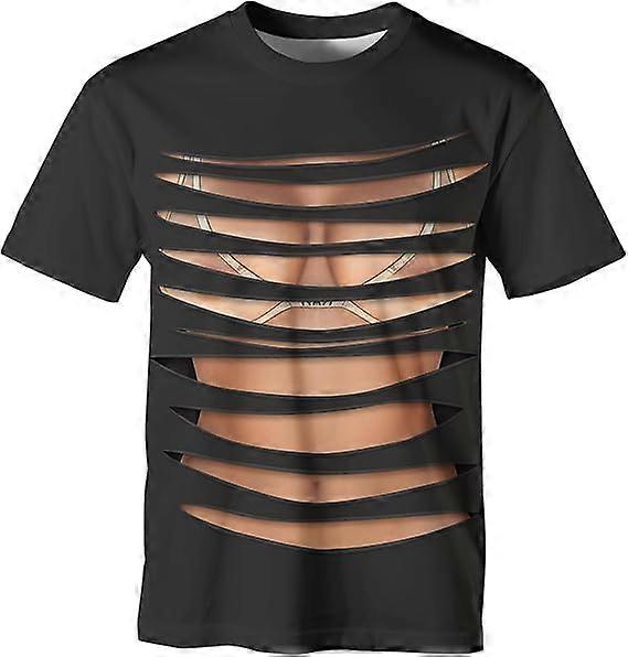 Funny Muscle Print T-Shirt Fitness Illusion Shirt for Men Women Graphic Short Sleeve