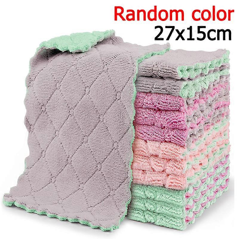 5/10pcs Kitchen Dishcloth Coral Velvet Towel Super Absorbent Wave Design Wipe Nonstick Oil Microfibre Thickened Rags Fast Drying