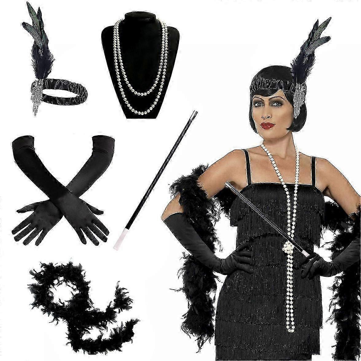 1920s Costume Accessories Set for Women Includes Headband Necklace Gloves and Holder Vintage Flapper Style Fancy Dress Party Supplies