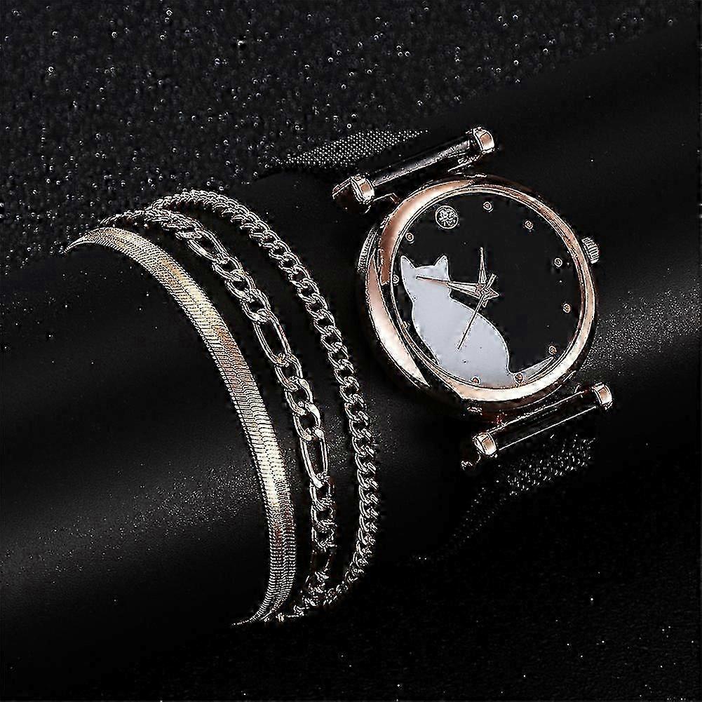 Women's Stylish Quartz Wristwatch with Cat Motif and Mesh Strap
