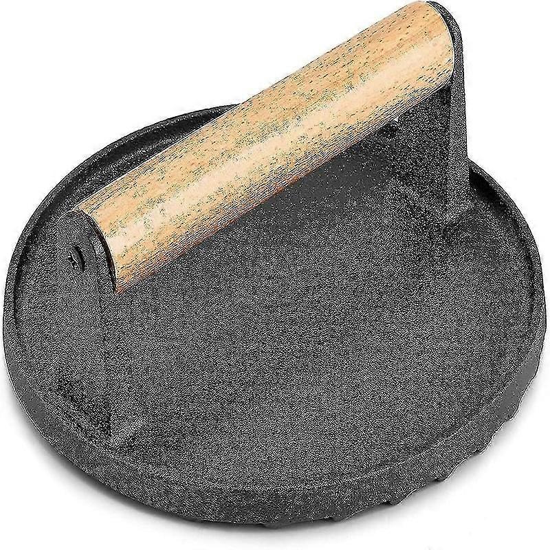 cast iron steak press with wooden handle