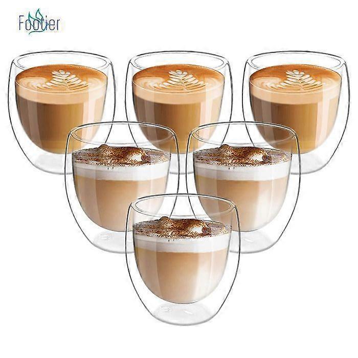 6pcs Double Wall Espresso Cups, Coffee Cups, Double Wall Cups, 80ml, Moka Cups, Thermal Floating Glasses