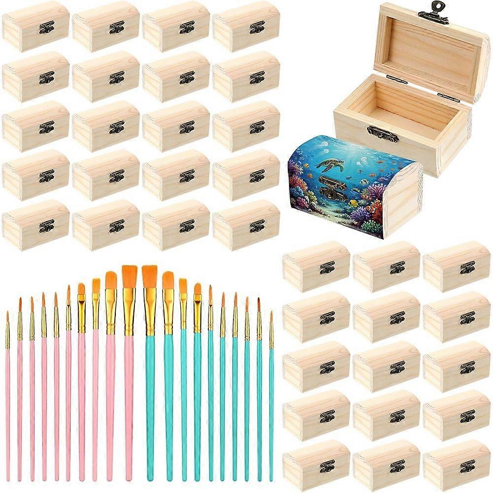 36Pcs Wooden Boxes for Crafts with 20 Paintbrushes,3.5 X 2.2 X 2 Inch Unfinished Wooden Treasure Chests for Jewelry Gift