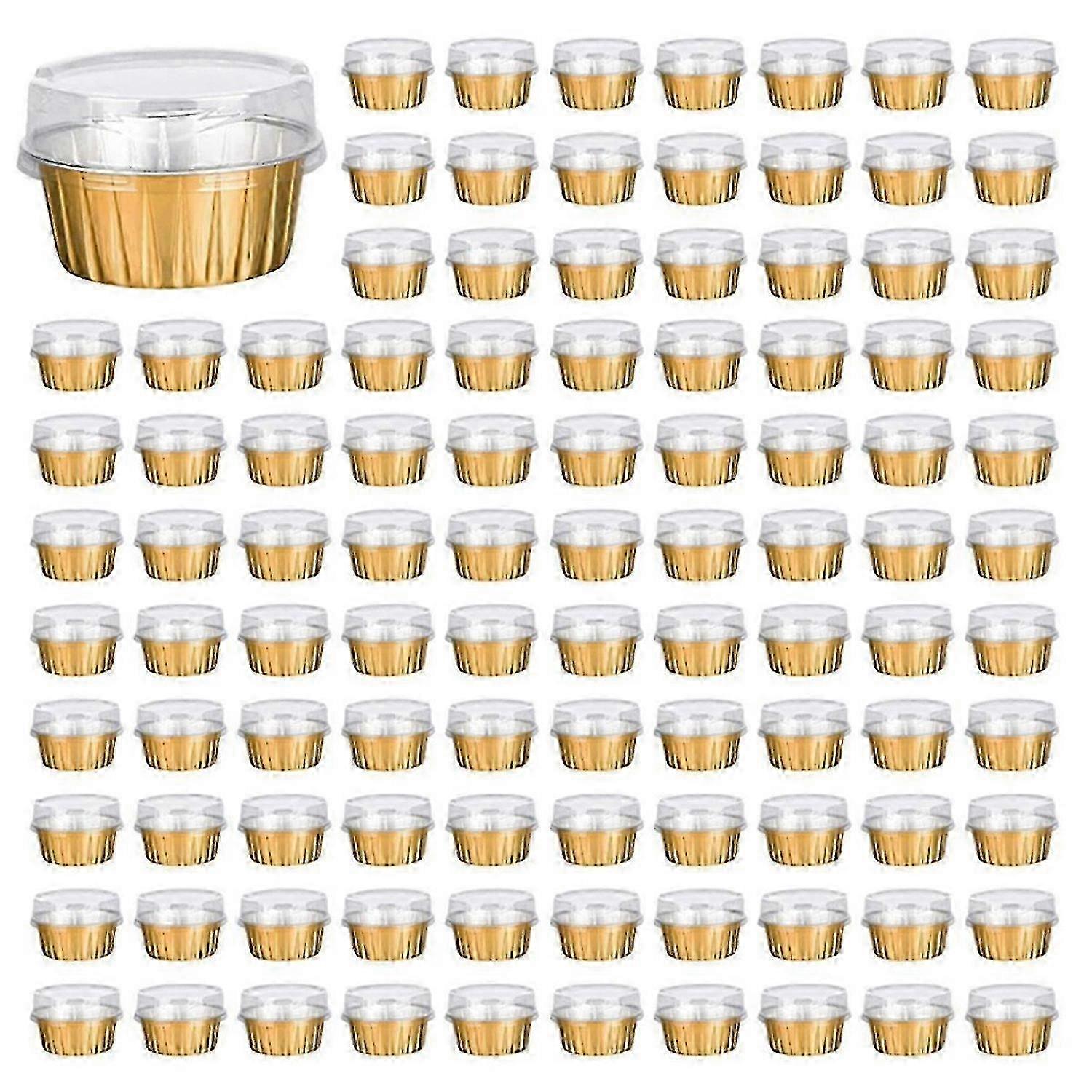 Dessert cups with lids, 50-pack gold foil baking cup holders