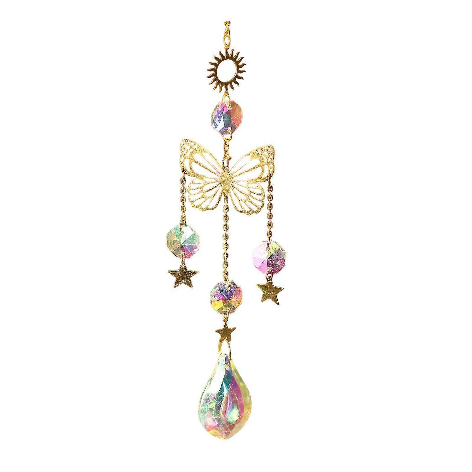 Qinghai Faux Crystal Sun Catcher Decoration Butterfly Mushroom Moon Star Sun Hanging Ornament Indoor Outdoor Home Office Garden Window Hanging Pendant