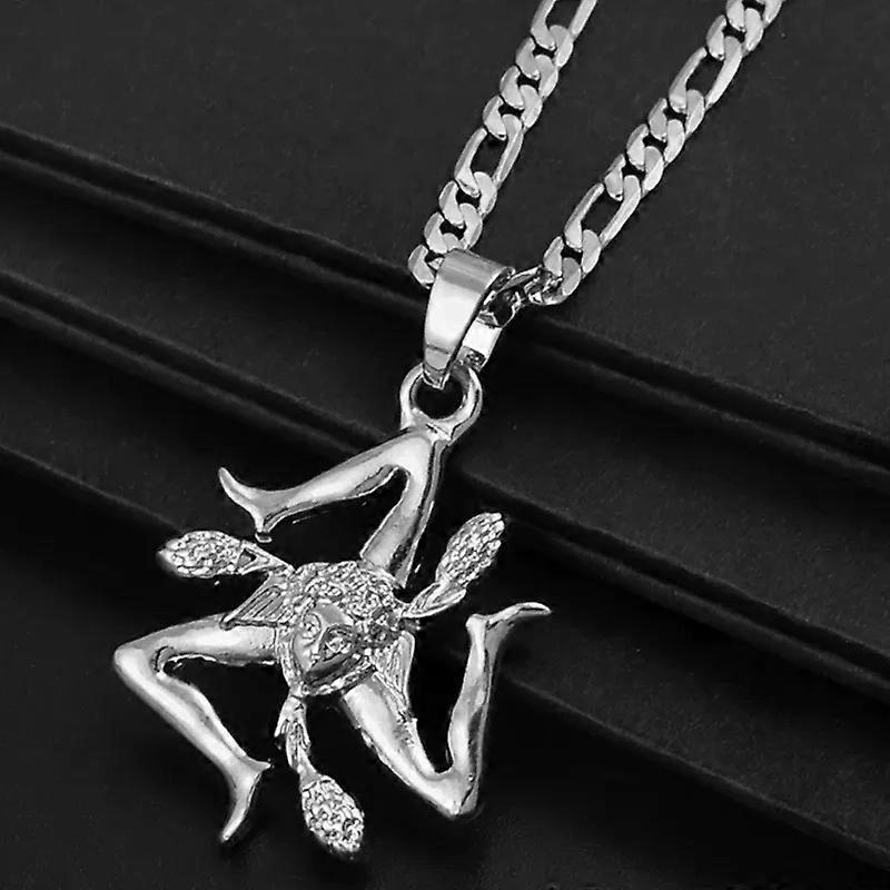 Anniyo Sicily Italy Cities Flag Pendant Necklaces Men Women Gold Color Italian Sicilia Jewelry 237106P