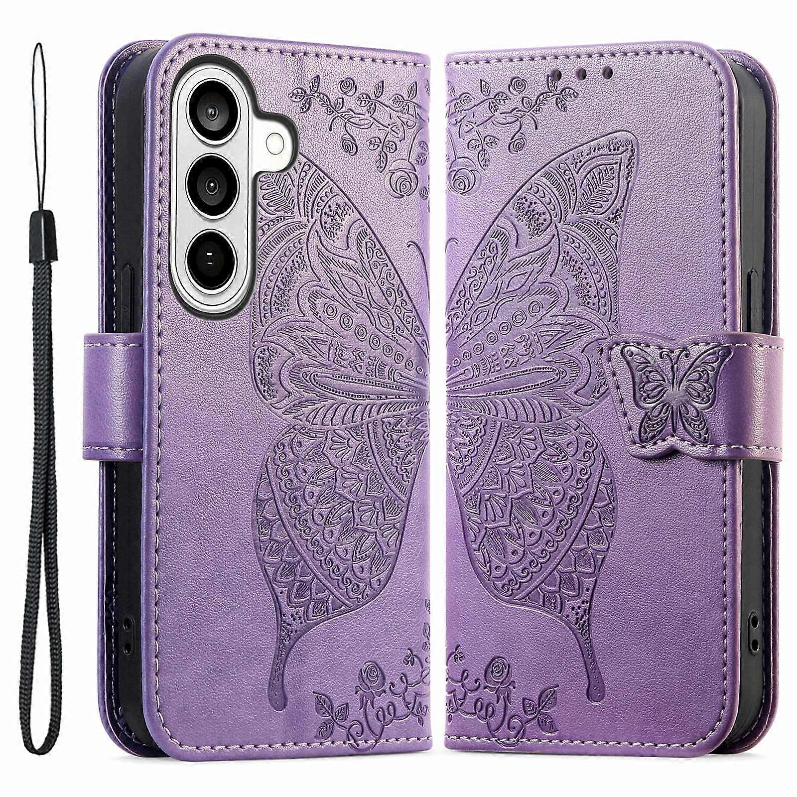 For Samsung Galaxy A57 5G Case with Strap Butterfly Pattern PU Leather Wallet Phone Cover - Light Pu