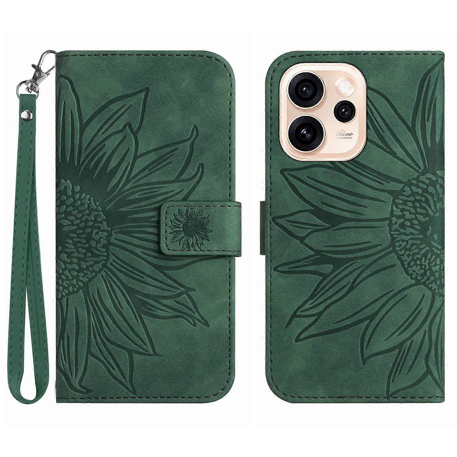 For Oppo Reno15 Pro Max 5G (Global) Case Sunflower Imprint Leather Wallet Phone Cover with Wrist Str