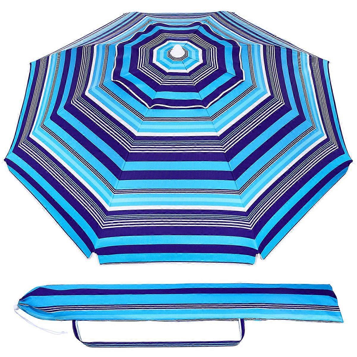 6.5ft Beach Umbrella Striped Design Sand Umbrella UV Protection Breathable Sun Shelter for Outdoor Beach Travel (Royal-blue)