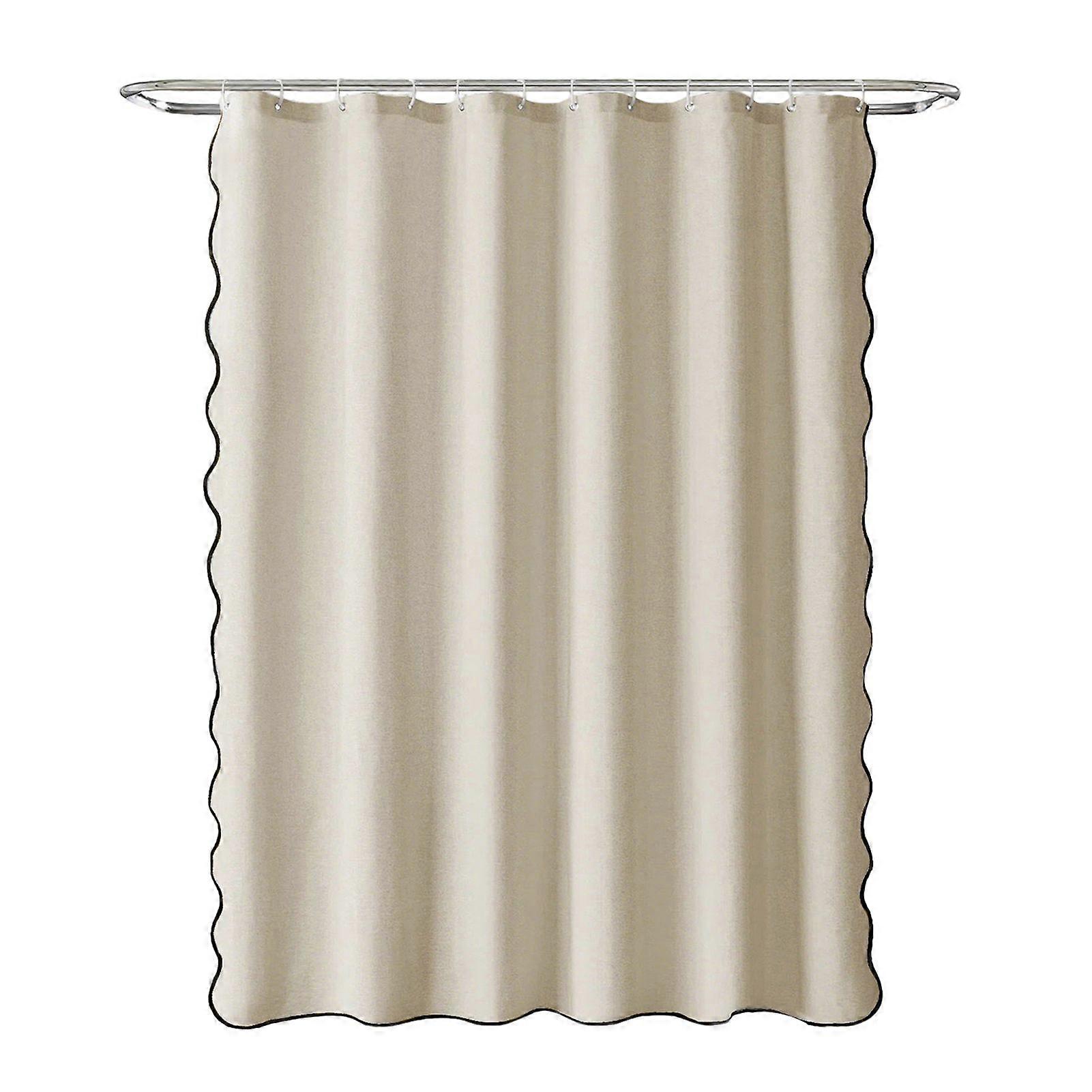 Scalloped Shower Curtain Heavy Duty Waterproof Curtain with 12 Hooks Washable Thick Cloth Shower Curtain with Black Border for Bathroom Hotel Bathtub