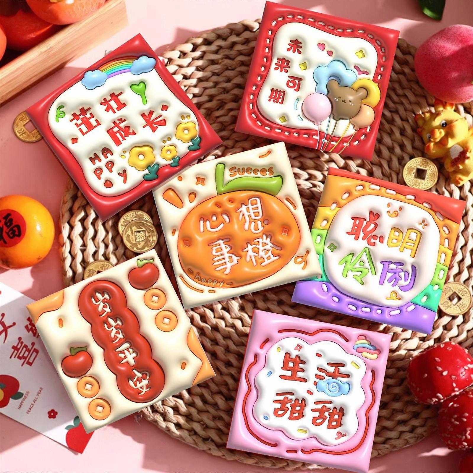 6pcs /Set Cartoon 3D Concave Convex New Year Spring Festival Red Envelope, Random Pattern Delivery