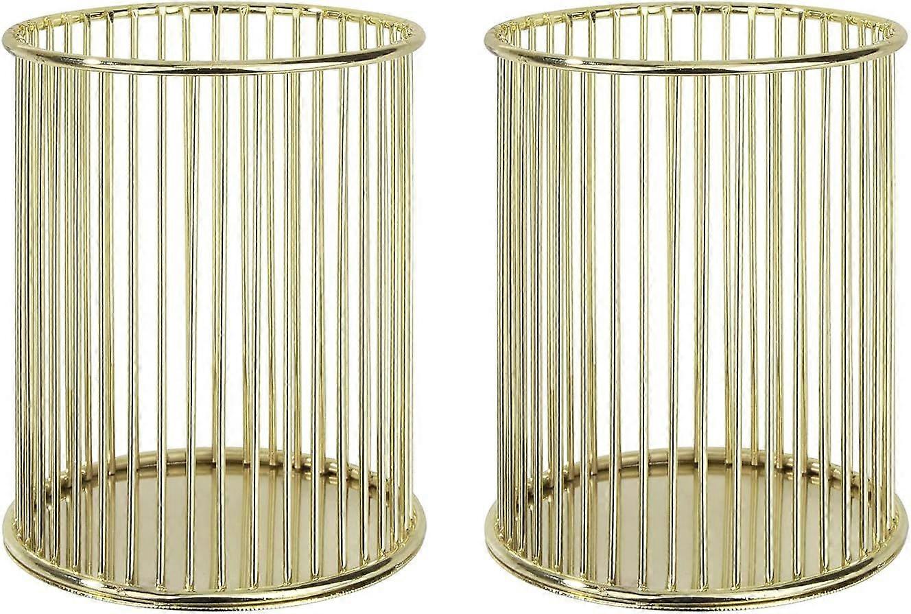 Durable Pen Holder: Made of high-quality metal with an electroplated surface, this sturdy and durable pen holder is oxidation and corrosion resistant. Rounded corners and smooth edges protect against scratches. Practical Pen Holder: This stylish and elegant pen holder features a fashionable round, openwork design. It not only organizes pens but is also suitable for storing, drying, and keeping your favorite kitchen utensils and small bathroom items. Versatile: Ideal for organizing pens, pencils, or other stationery, this pen holder can also be used to organize cosmetics, makeup brushes, eyeliners, toothpaste, kitchen utensils, and other small items. Fine Craftsmanship: This elegant and attractive pen holder is meticulously crafted at every stage, giving it a glossy finish and eliminating imperfections, preventing scratches. It's perfect for decorating your desk or office. At home or in the office. Creative Gift: Pen holder, essential organizer for desk storage. The simple and regular linear design makes your desk more elegant and beautiful. A creative gift for yourself, your family, friends, or business partners. Quantity shipped: 2 pieces