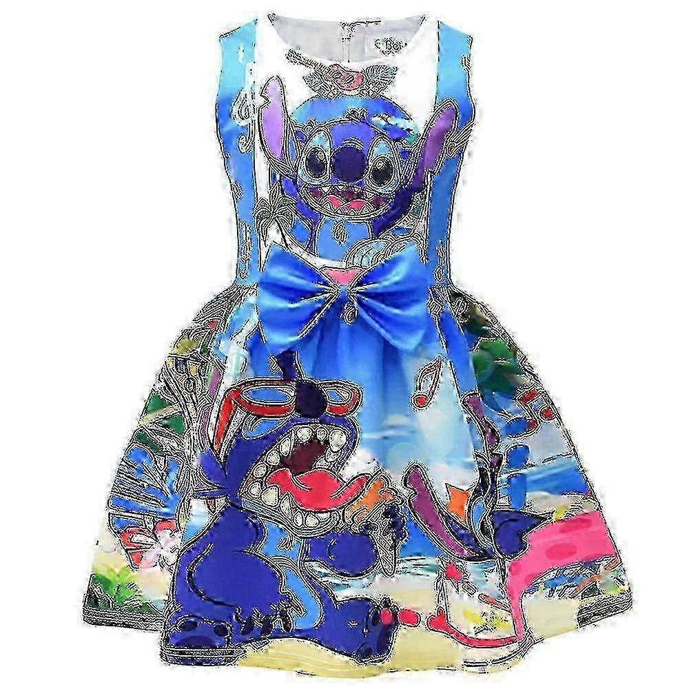 5-9 Years Kids Girls Lilo And Stitch Printed Sleeveless Dress Summer Holiday Princess Party Skater Dress Gifts Y