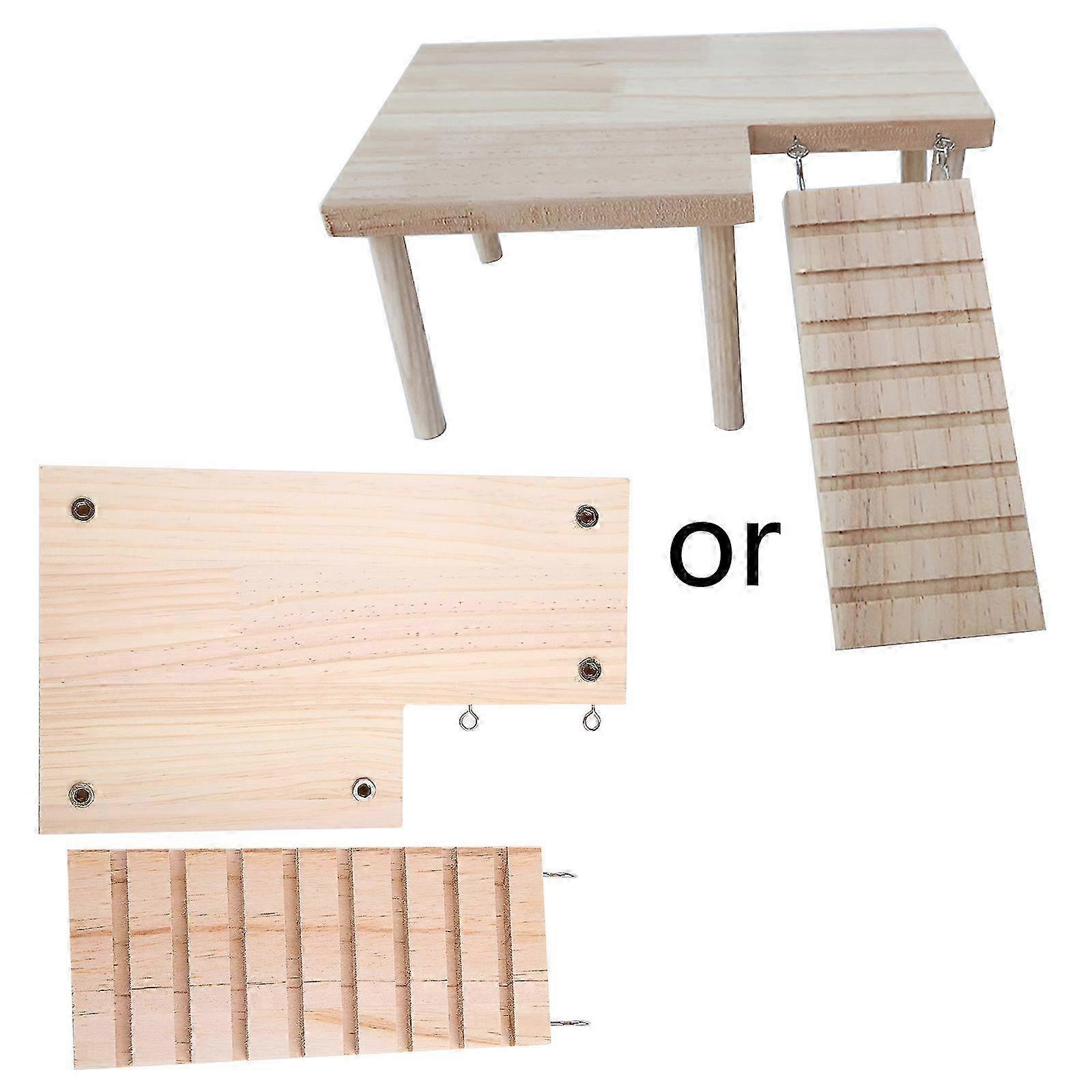 Wooden Stand Platform for Hamster Cage with Ladder and L Shape Legs