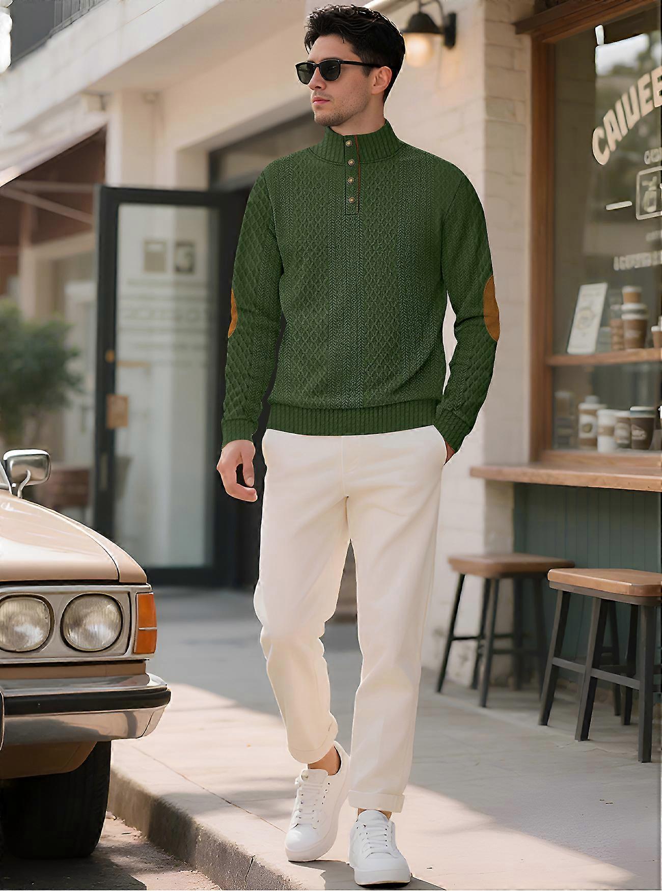Men's Jacquard Casual Sports Sweatshirt with Button-Down Collar