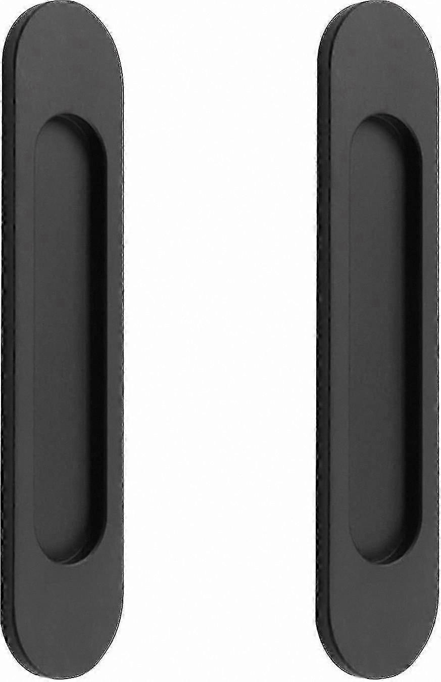 Self-adhesive door handles for sliding barn doors, set of 2 matte black aluminum alloy oval handles, no drilling required. Modern Style: This recessed oval sliding door handle features a modern design and matte black finish with a sleek recessed profile, complementing contemporary furniture and enhancing the aesthetic of your space. High-quality material: Made from premium aluminum alloy with electroplated surface finish; smooth edges and comfortable tactile feel; corrosion-resistant and durable due to one-piece construction. Wide Applications: Suitable for sliding doors, pocket doors, folding doors, cabinets, wardrobes, and bathroom vanities. Easy Installation: No drilling or grooving needed; features strong self-adhesive backing—simply peel off the protective film and press into place. Package Includes: 2 oval recessed door handles and mounting screws. Each handle measures 180 x 40 mm (L x W); recommended recess depth is 4.8 mm. Please verify dimensions before purchase.