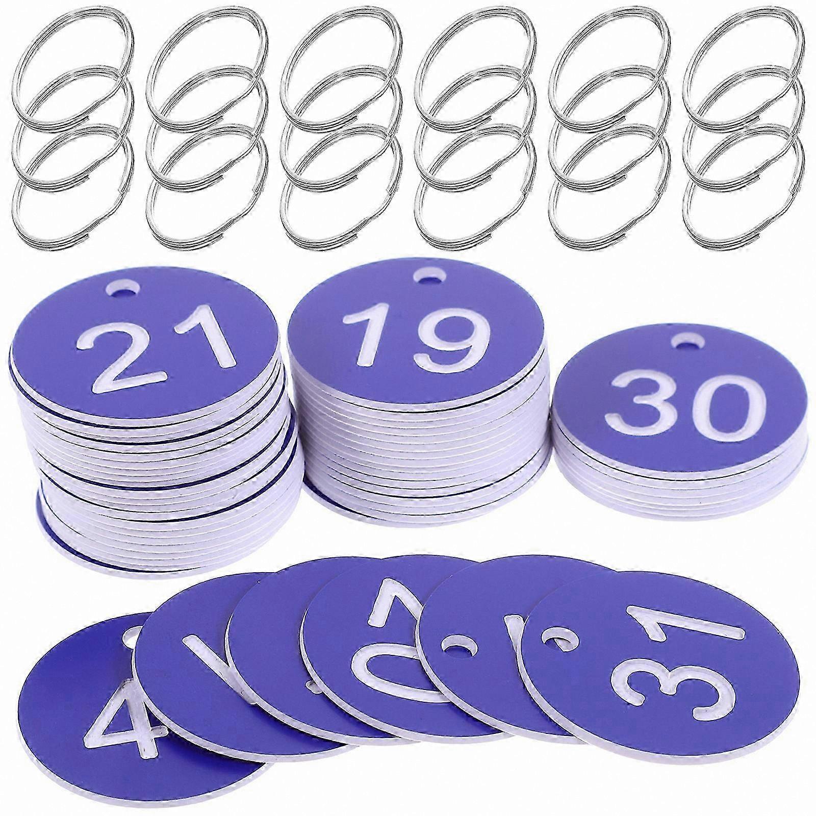 Portable Round Number Tags, 50 Sets Blue Acrylic Tags for Organization, Simple Design