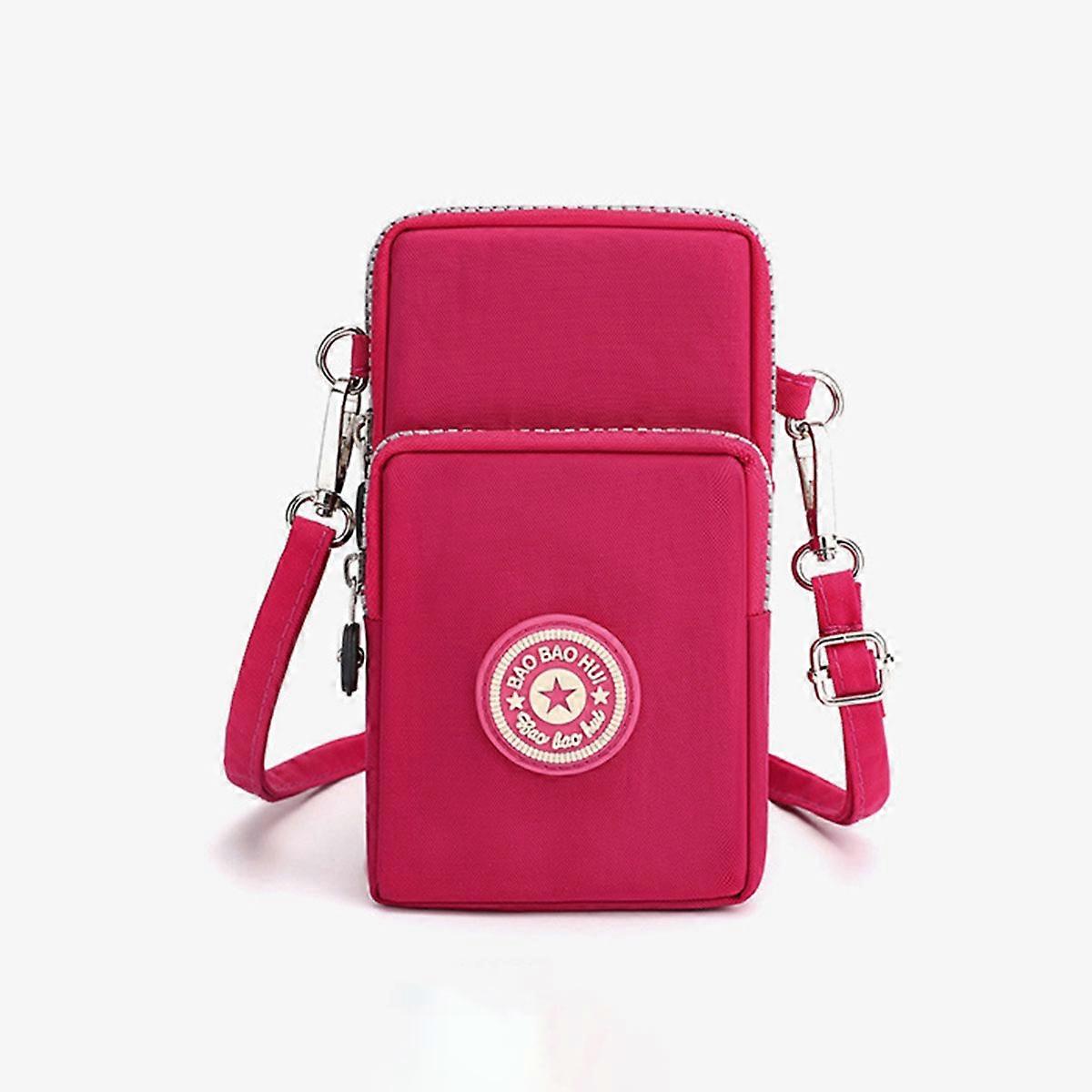 A Rose-Red Fashionable Korean-Style Crossbody Phone Bag, a Neck-Hanging Sports Arm Bag, a Vertical Wrist Coin Purse, 1 Piece