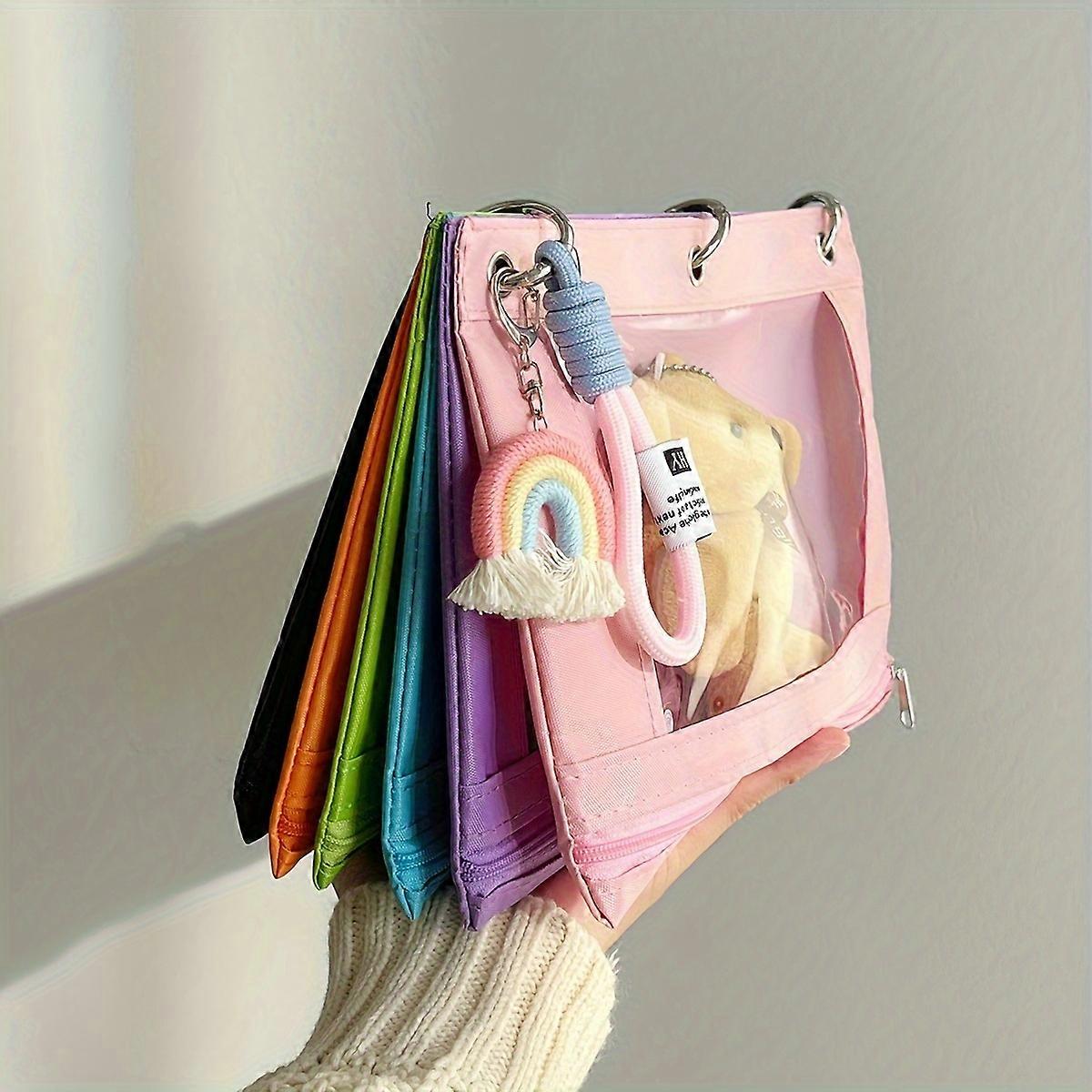 Rainbow 6-Color Oxford Cloth 3-Ring Binder, Multi-Use Storage Bag with Lanyard Accessories, Cosmetic Organizer