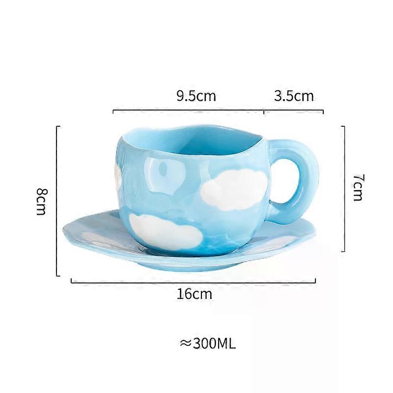 Creative Irregular Ceramic mug Hand-painted Flower Clouds Coffee Cup with Saucer Breakfast Milk Tea Cups Handmade Gift Drinkware