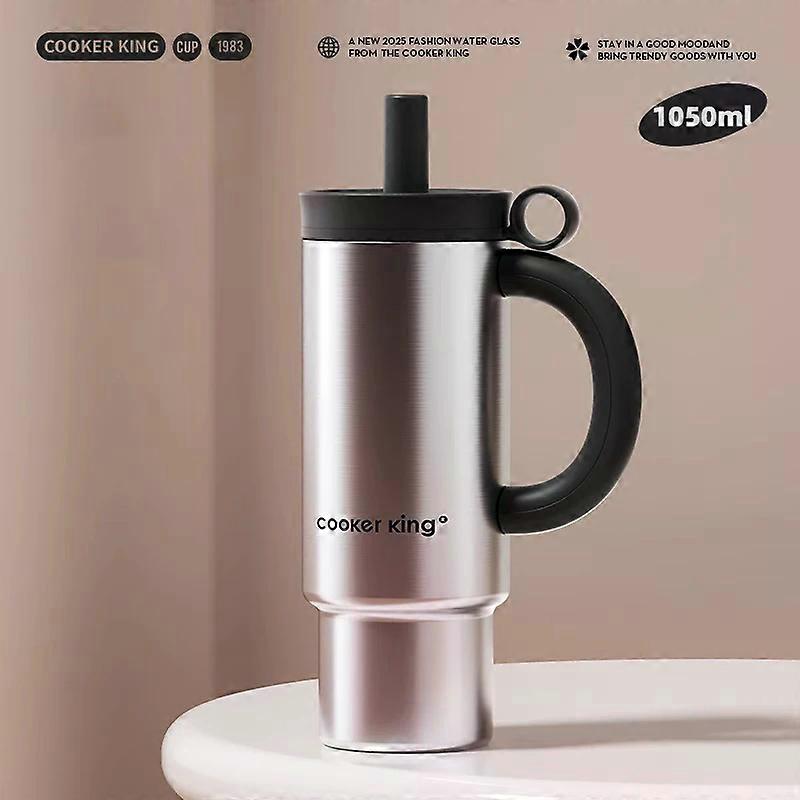 COOKER KING 1050ML Stainless Steel Vacuum Flask Large Capacity Thermos Cup with Straw Car Cup Leak-proof Keep Hot&Cold Drinkware