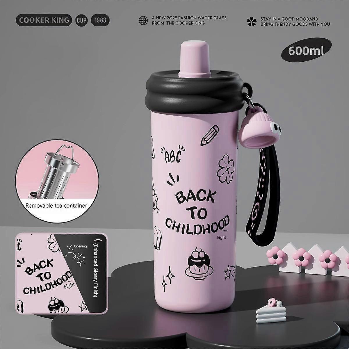 COOKER KING 600ml Straw Insulated Cup Stainless Steel Thermos Cup with Tea Strainer Cold&Hot Vacuum Flask Students Girls Gift