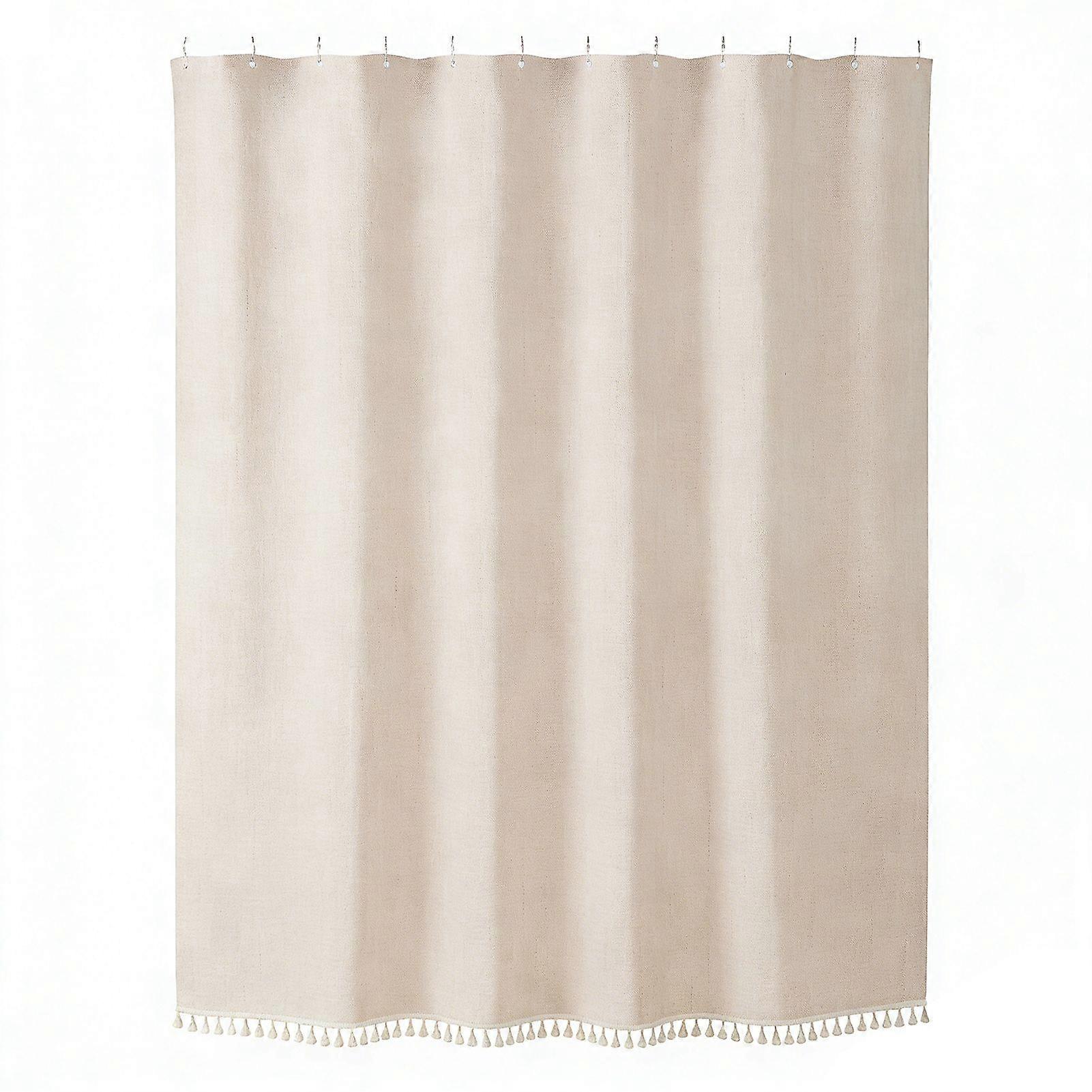 Qinghai Boho Shower Curtain with Tassels Farmhouse Shower Curtain Fringed Edge Bath Curtain with Grommets Hooks for Home RV Bathroom Decor