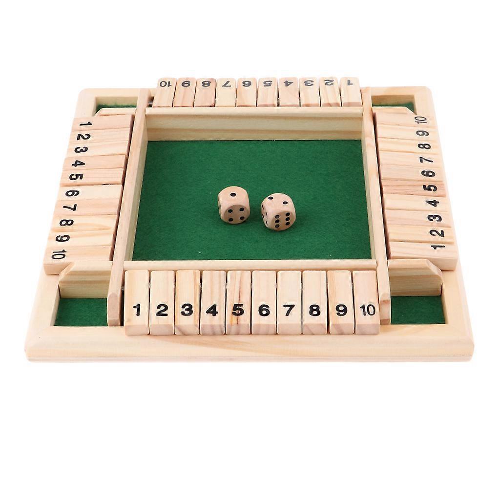 Dice Board Game Set Wooden 10 Numbers Flaps & Dices Game for 4 Players Party Club Drinking Games Family Entertainment
