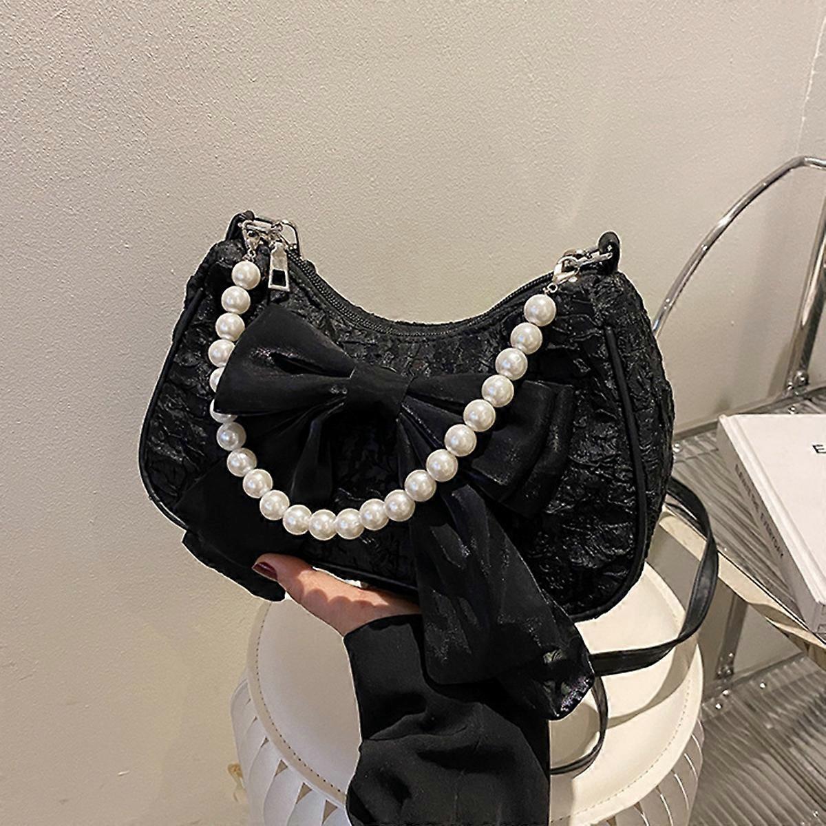 White folds pop retro bow bag Female Pearl handle New fashion pearl armpit shoulder crossbody bag 1 outfit