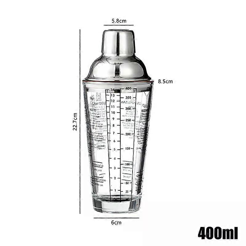 Glass Cocktail Shaker Hand Shaker Cup with Scales 400/600ML Metallic Steel Lid & Strainer Milk Tea Wine Drink Shaker Mixer Bar