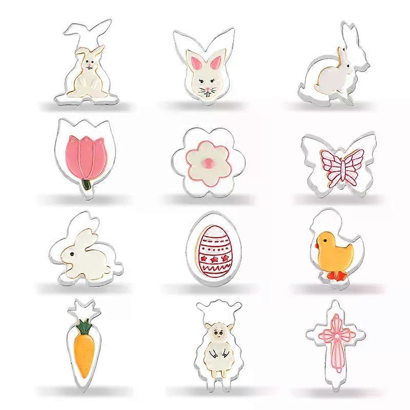 12pcs Stainless Steel Easter Biscuit Cutting Mold Cartoon Rabbit Egg Carrot Cookies Mold for Kids Easter Party DIY Baking Tool