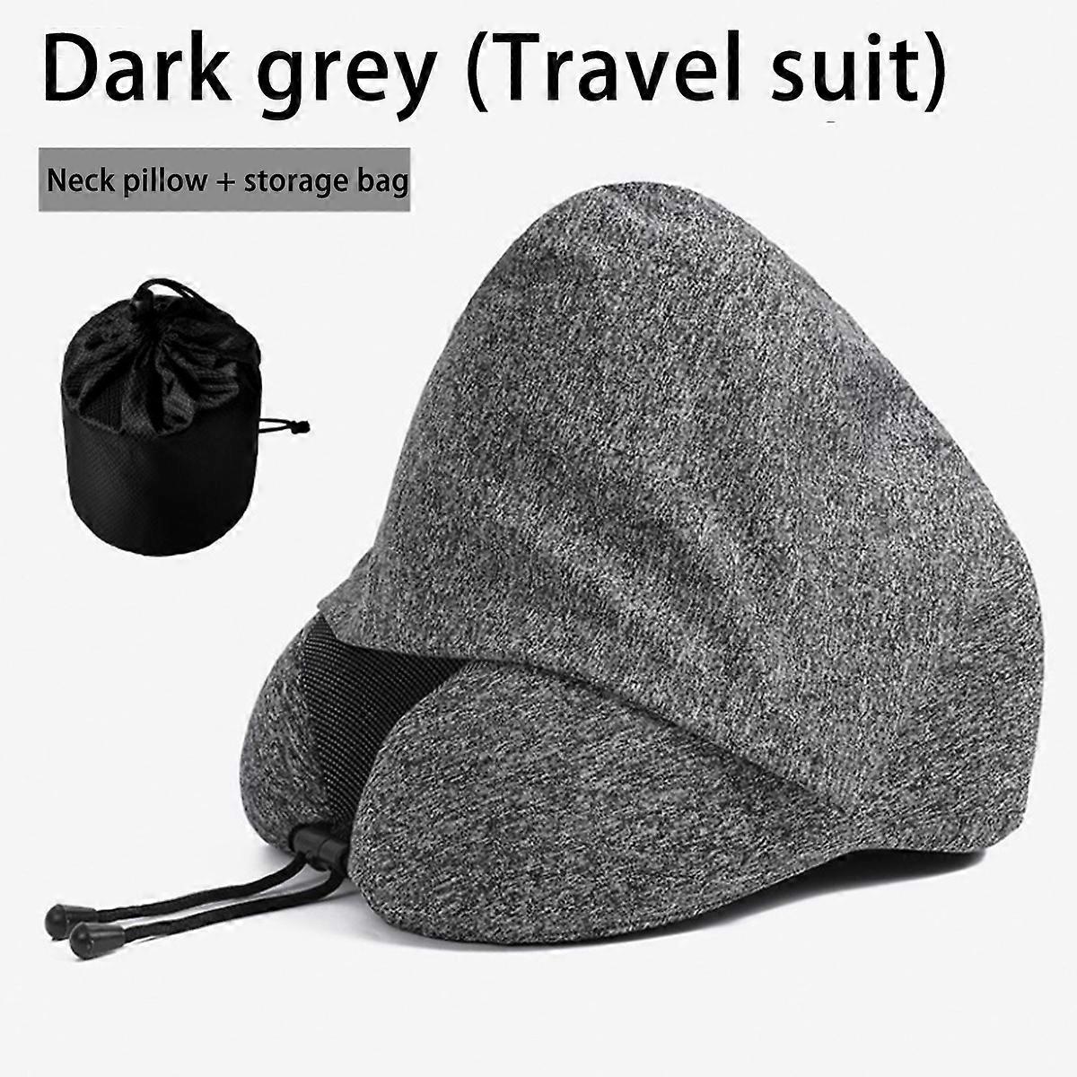 Hooded, light-blocking U-shaped pillow, travel portable airplane neck protector, memory foam pillow, midday rest neck protector