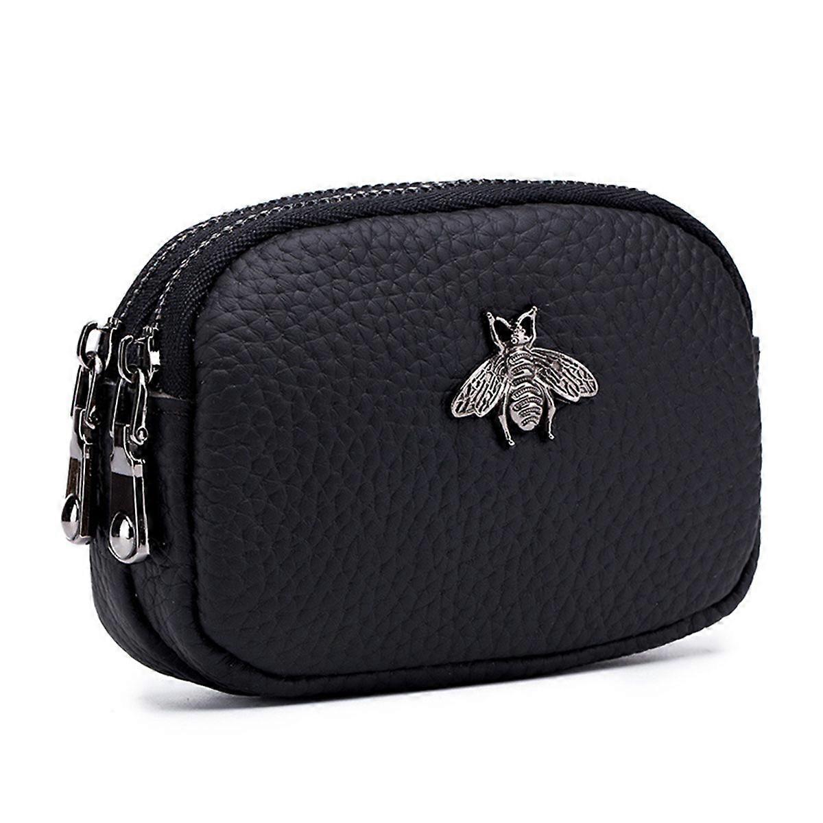Mini Coin Purse for Women Leather Simple Double Zipper Cute Coin Bag Compact Money Holder