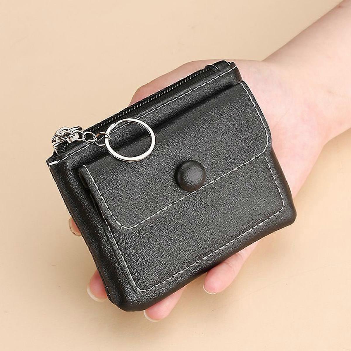 Black fashionable ladies' zipper short wallet, solid color card case, coin pocket, key case, coin purse,1 PC