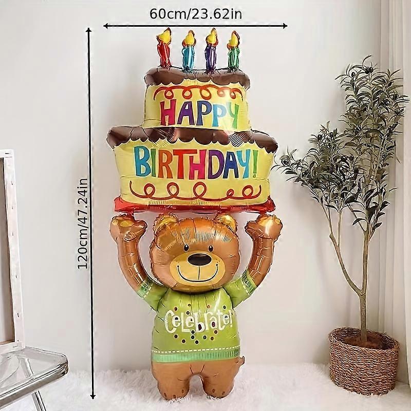 A Teddy Bear Balloon Holding A Cake Is Perfect for Birthday Celebrations and Holiday Gifts. Birthday Cake Decoration Party