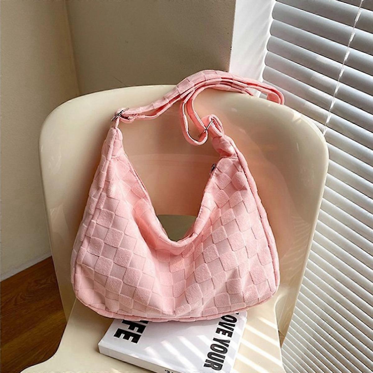 1 Pc, Pink Checkered Autumn and Winter New Crossbody Bag, a Laid-Back Style Large-Capacity Student Commuting Single-Shoulder Bag.