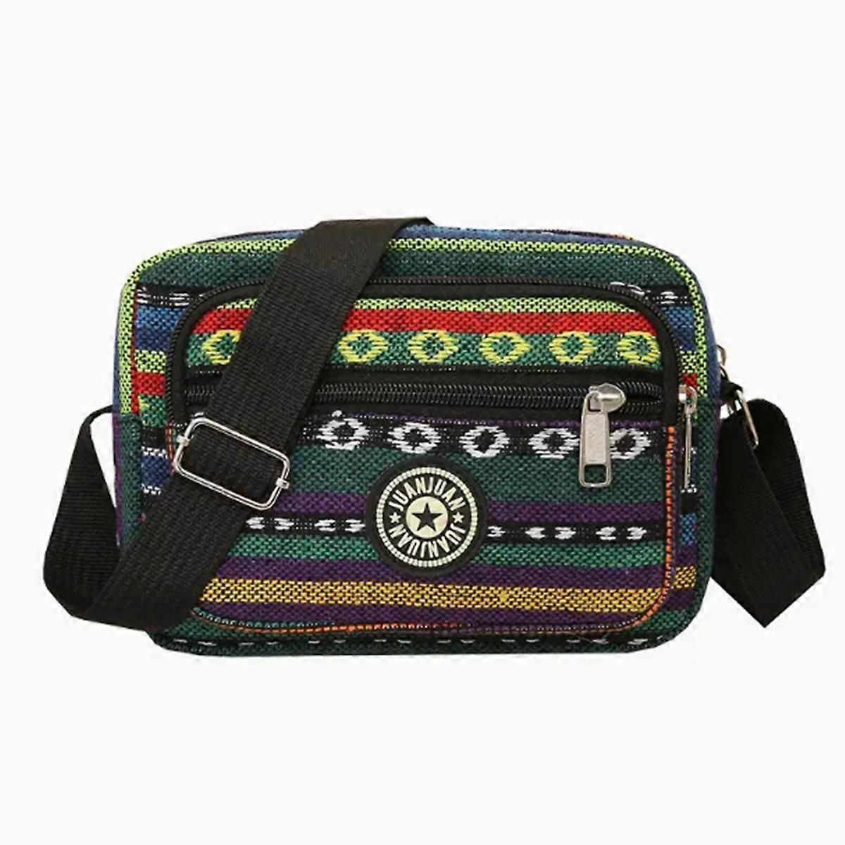 Fashionable and Exquisite Ethnic-Style Nylon Single-Shoulder Bag, Simple Travel Multi-Compartment Large-Capacity Crossbody Bag