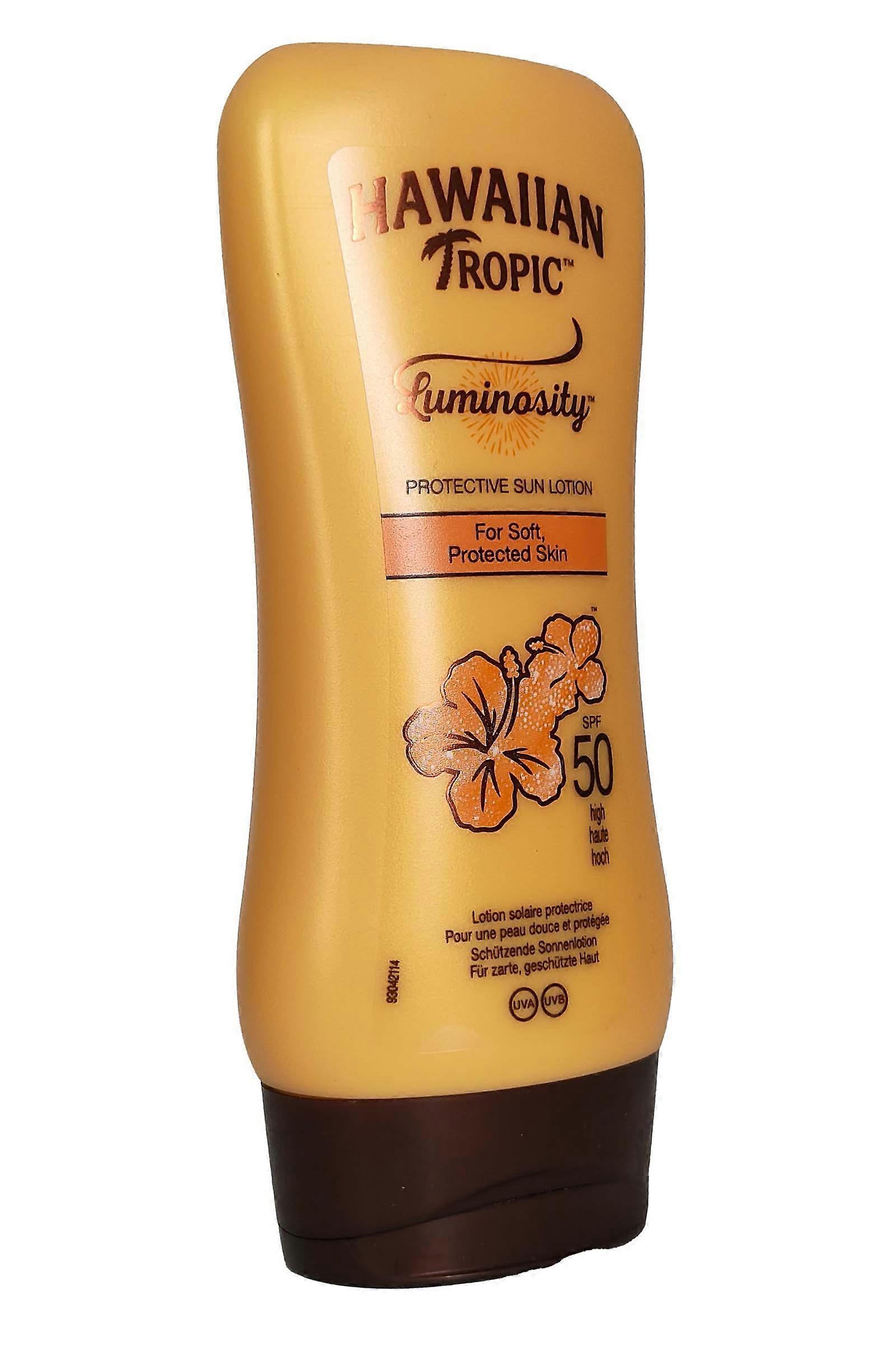 Get ready to glow with Hawaiian Tropic Luminosity Sun Lotion SPF 50 This vegan-friendly lotion not only shields your skin from harmful rays but also leaves it soft, radiant, and smelling like a tropical paradise.Luminosity Sun Lotion SPF 50 leaves skin protected, soft and with a radiant glow. Formulated not only to effectively protect, but to delight your senses and be enjoyable to use with Hawaiian Tropic's iconic island botanical scent and a luxurious feeling texture that leaves your skin with a beautiful looking glow.Ingredients: Aqua, Homosalate, Octocrylene, Ethylhexyl Salicylate, Butyl Methoxydibenzoylmethane, C12-15 Alkyl Benzoate, VP/Eicosene Copolymer, Cetearyl Alcohol, Phenoxyethanol, Neopentyl Glycol Diheptanoate, Diisopropyl Adipate, Mica, Glycerin, Dimethicone, Parfum, Polymethylsilsesquioxane, Acrylates/C10-30 Alkyl Acrylate Crosspolymer, Coco-Glucoside, Propylene Glycol Dibenzoate, Methylparaben, Ceteth-10 Phosphate, Dicetyl Phosphate, Propylparaben, Sodium Hydroxide, Disodium EDTA, Paraffin, Xanthan Gum, Butyrospermum Parkii Butter, Potassium Jojobate, Simmondsia Chinensis Butter, Jojoba Alcohol, Tocopheryl Acetate, Propanediol, Mangifera Indica Seed Butter, Colocasia Antiquorum Root Extract, Carica Papaya Fruit Extract, Psidium Guajava Fruit Extract, Plumeria Acutifolia Flower Extract, Passiflora Incarnata Fruit Extract, Mangifera Indica Fruit Extract, Panthenol, Aloe Barbadensis Leaf Juice, Sodium Ascorbyl Phosphate, Hexyl Cinnamal, Linalool, CI 77891.. We check every unit prior to it leaving our warehouse. Please ensure you fully read read description and size of products before ordering. Colours may vary due to photographic or printing processes.