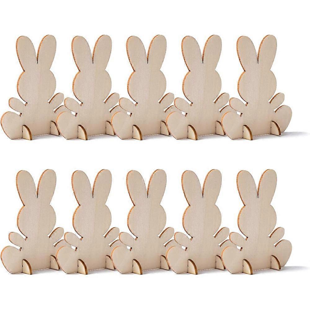 10pcs Unfinished Wooden Easter Bunny 3D Rabbit Wooden Stand Ornament Cutouts Craft for DIY Painting Table Decoration