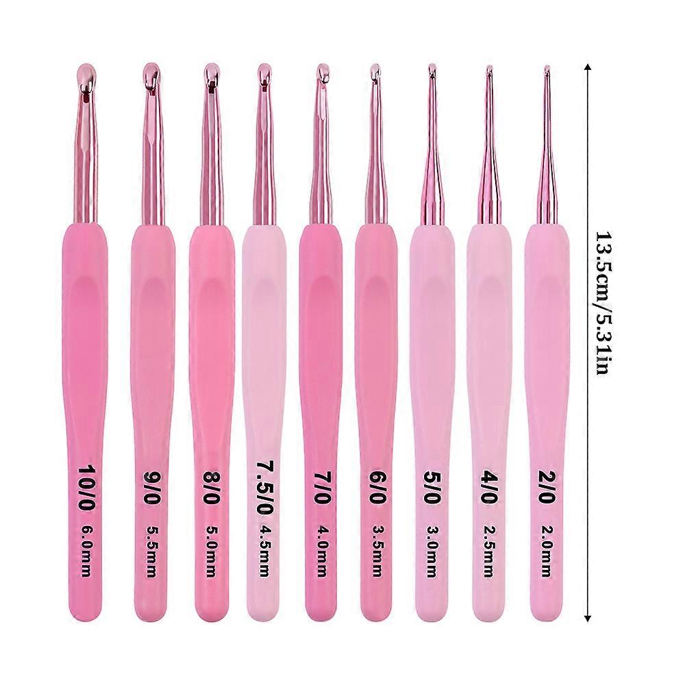 9pcs/set 2.0mm-6mm Pink Gradient Aluminum Crochet Hooks Ergonomic Soft Handle Crochet with Case Crochet Kit for Beginners