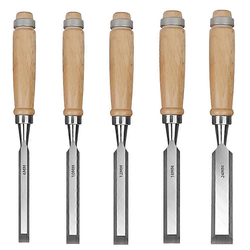 1/5Pcs Wood Chisels Set Sharp Chrome-Vanadium Steel Wood Carving Chisels with Beech Handles Ergonomic Wood Carving Tools