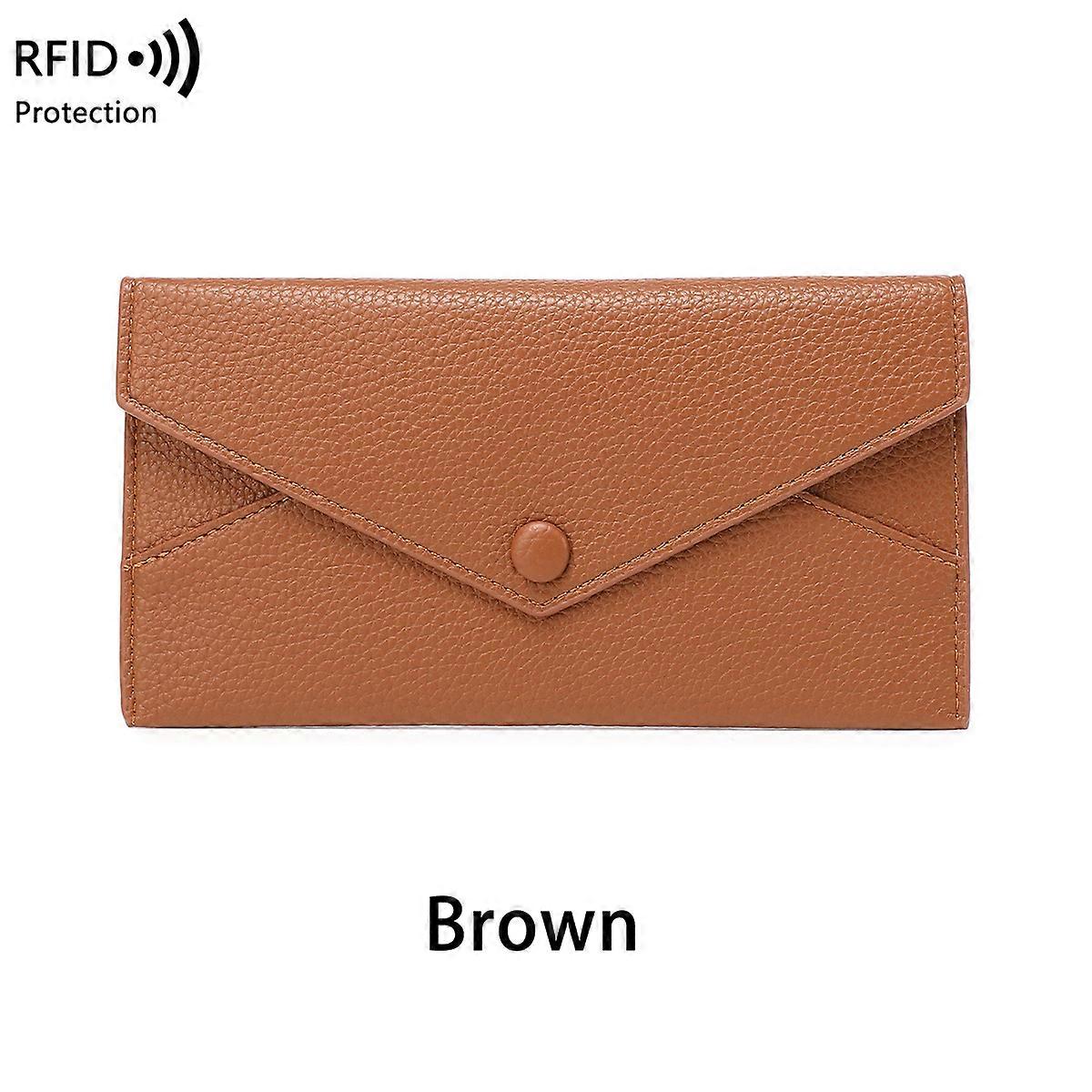 New RFID anti-theft brush women's wallet, long envelope bag with lychee pattern soft leather, ultra-thin and simple clutch bag