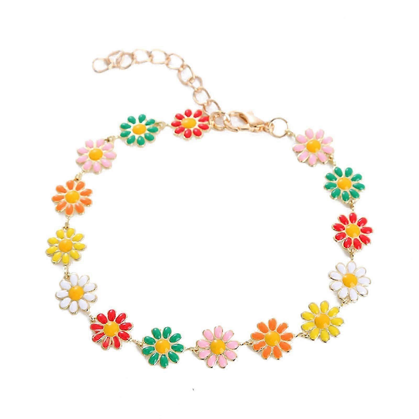 European and American Novel Jewelry Daisy Bracelet Earrings Lady Simple Temperament Painted Flower Pendant Necklacef