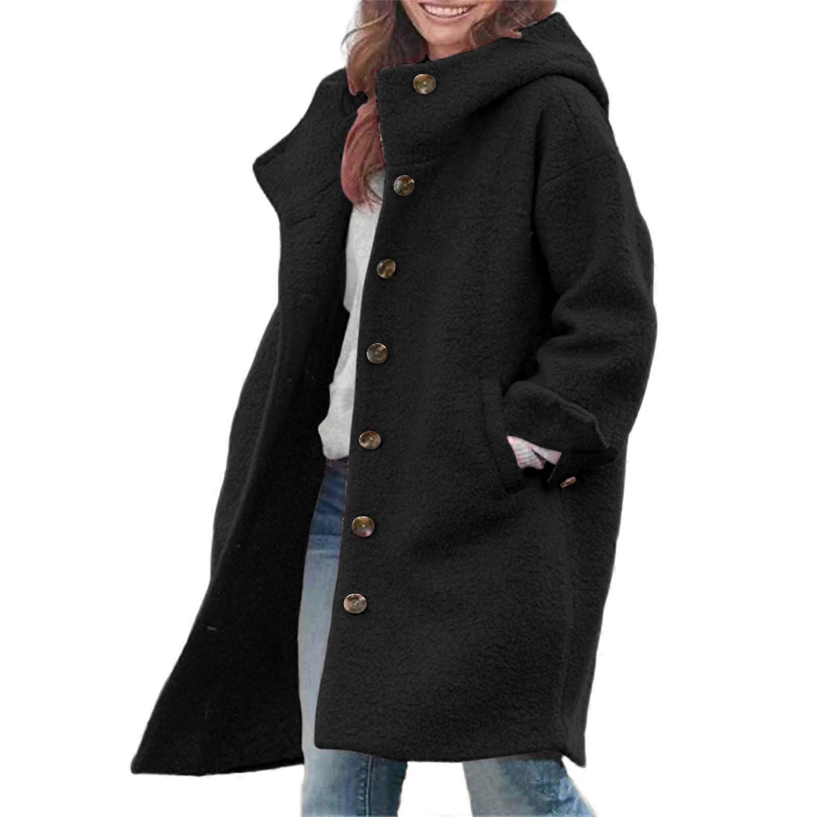 Women's Winter Single Breasted Long Wool Coat with Hood Casual Wool Blend Trench Coat Jacket Royal Bluef