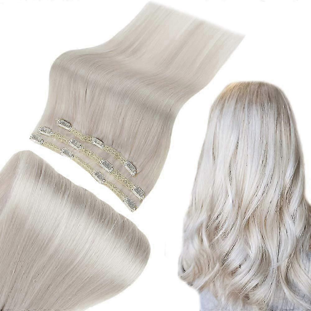 Clipin 100% Remy Human Hair Extensions that blend naturally with your own hair. Washable and heatstylable, these silky straight wefts give instant length and volume without glue, tape, or sewing. Key benefits Natural look and feel: 100% Remy human hair matches and blends with your own hair for a seamless finish. Ready fast: Clips are preattached so you can apply the set in about 5 minutes. Durable styling: Safe to wash, blow dry, flat iron, or curl with hot tools, just like natural hair. Low maintenance: No shedding, no tangles, no odor, and a soft silky texture. Flexible use: Threepiece combination allows customized placement for desired volume and coverage. Product specifications Material: 100% Remy Human Hair Hair length: 20 inches Hair color: #800 White Blonde Net weight: 50 g per set Hair style: Silky straight Expected hair life: 6 to 12 weeks depending on care and usage Included wefts: 2 x 10.5 inch wide wefts with 4 clips each; 1 x 8 inch wide weft with 3 clips How to use (quick steps) 1. Comb your hair and section as needed. 2. Open each clip, place the weft against your scalp, then close the clip to secure. 3. Check fit for firmness and repeat for remaining pieces. 4. Blend with your natural hair and style as desired. Dyeing and color care notes Only light colors can be dyed darker; do not bleach these extensions. Test a small hidden strand before dyeing the full set. After dyeing, rinse with warm water and shampoo, apply conditioner, comb through, then wash. For results when changing color, consult a professional hairdresser. Sizing and tips One pack is usually sufficient for thin hair. two or three packs if you have thick hair or want extra volume and length. Practical applications Everyday wear: Add naturallooking length and volume for work or casual outings. Special events: Create polished styles for weddings, parties, or photo shoots in minutes. Quick styling changes: Try looks without committing to a permanent cut or color. What you get One set of clipin wefts ready to use with clips already attached and easy stepbystep application. Care note Proper care extends lifespan. Avoid bleaching and follow dyeing guidance when altering color.