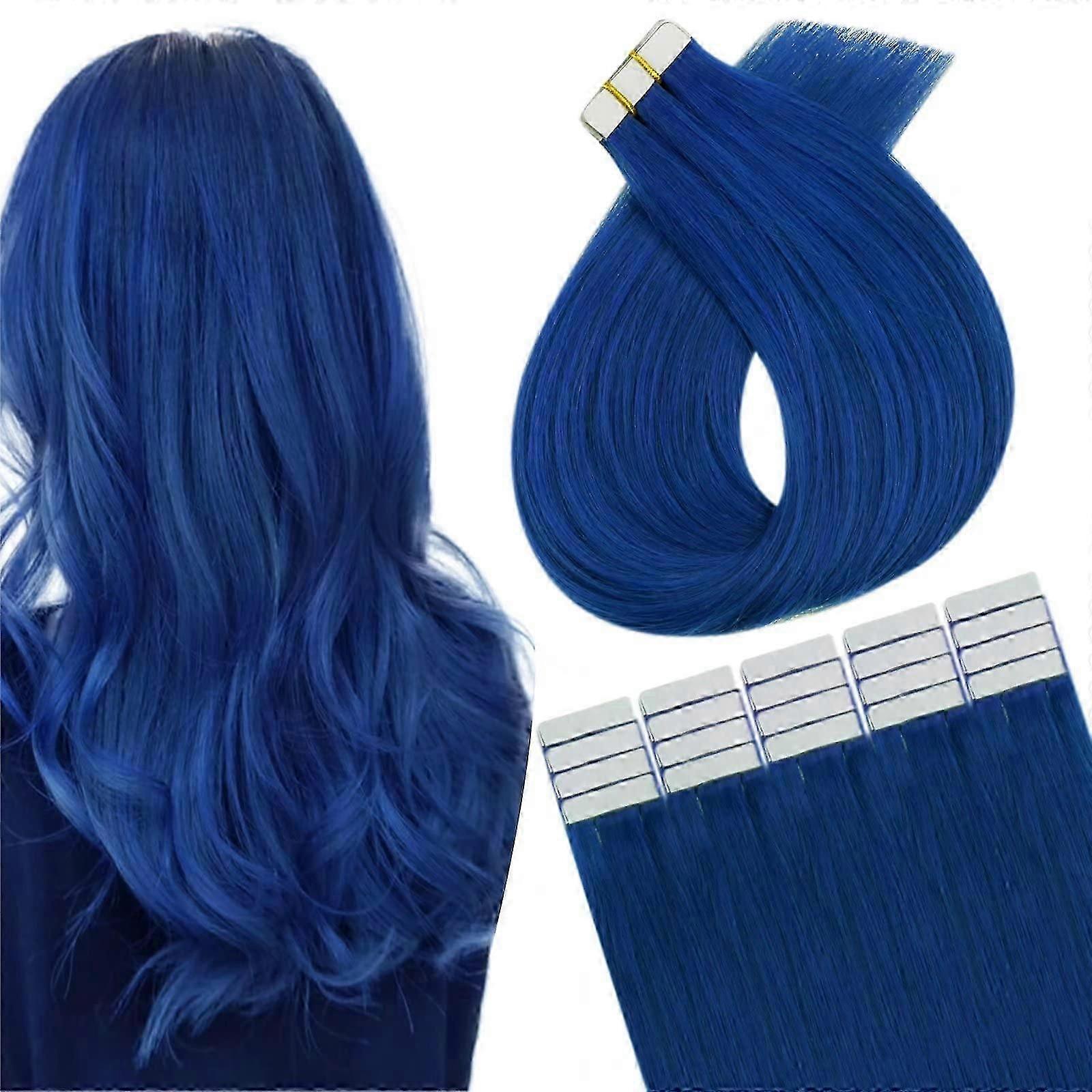 Blue Remy Human Hair Tape in Extensions 12 Inch Straight Lightweight Comfortable Wear 10pcsc