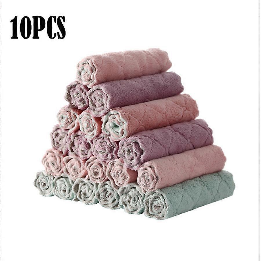 10pcs Super Absorbent Microfiber Cleaning Cloths - Random Colors, High-Efficiency Kitchen & Bathroom Towels For Household Use